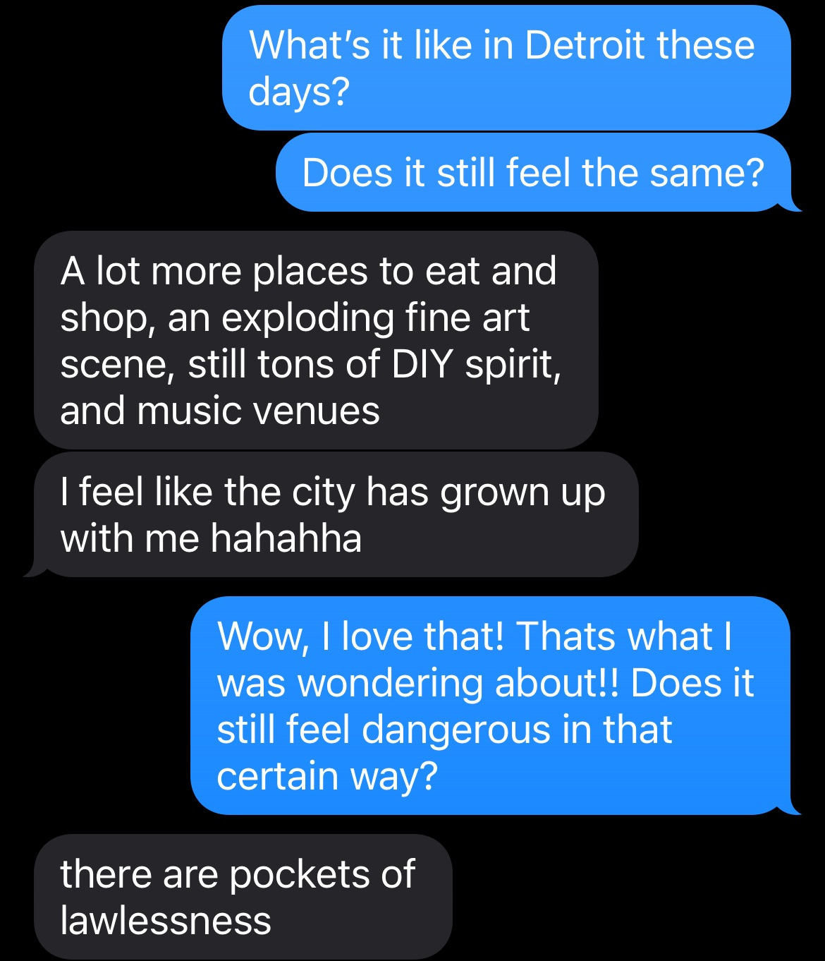 I am yearning for a vibe check from Detroit, so I text my friend Vanessa (aka Nancy Friday), who grew up in the same dirt-bag scene as me but stuck around.